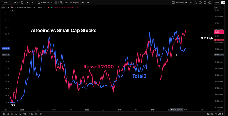 This mirrors what we’re seeing in traditional markets, where small-cap equities lag large-caps. Risk is being rationed, not embraced.
