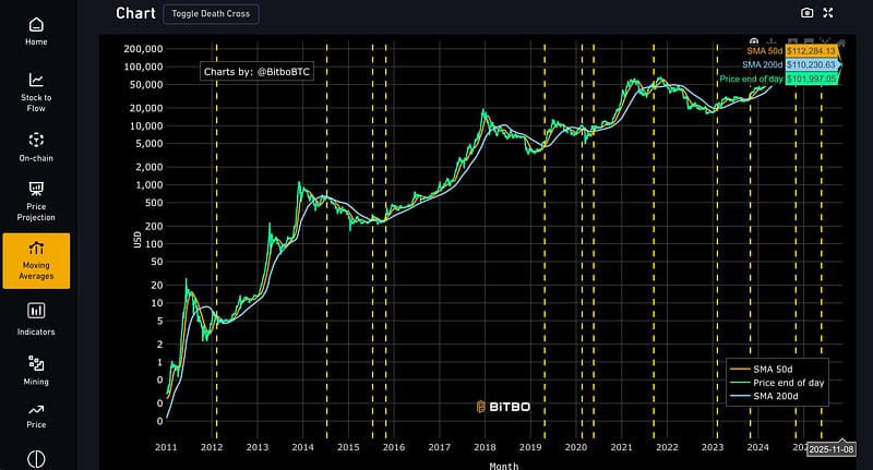 After flirting with six figures, BTC fell below $101,000 and then undercut the 200-day moving average — one of the strongest trend indicators in global markets.