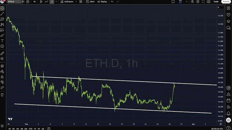 But when I look at the broader range, it’s still drifting inside a downward channel relative to Bitcoin.