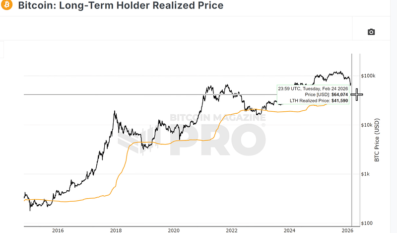 That’s not a magical support level. But in past cycles, Bitcoin has often revisited — and sometimes broken — long-term holder cost basis before bottoming.