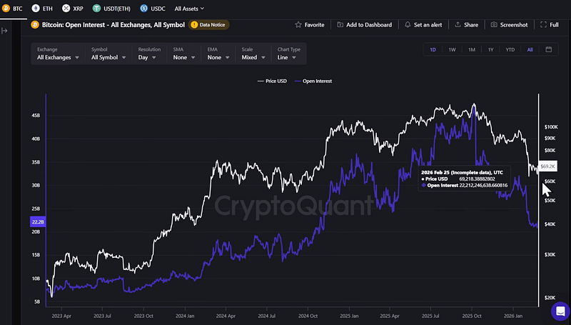 At the same time, open interest in Bitcoin futures has been declining since October.
