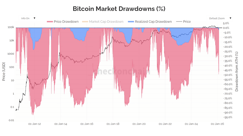Each cycle delivers lower multiples from bottom to top. But drawdowns stay vicious. It means Bitcoin is maturing into an asset where risk management matters more than ideology. Blind holding is no longer a strategy. It’s a belief system.
