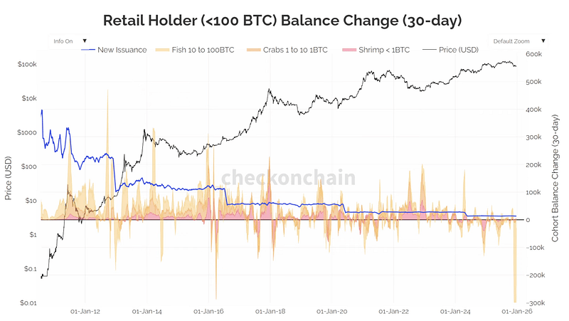 This selling pressure alone was enough to overwhelm issuance. It was enough to absorb ETF demand. And it was enough to push the price lower despite every bullish narrative floating around.